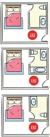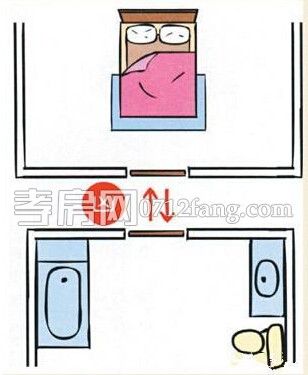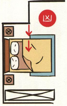 房間里的廁所對(duì)到床,情況比房門(mén)對(duì)到廁所嚴(yán)重,對(duì)到頭,會(huì)頭痛、思考時(shí)不能集中,住久了會(huì)產(chǎn)生腫瘤、中風(fēng)等;對(duì)到腰,會(huì)腰酸、心臟無(wú)力、水腫,住久了會(huì)產(chǎn)生糖尿病、心臟病;對(duì)到腳,會(huì)坐骨酸痛、膝蓋無(wú)力、痛風(fēng)水腫,住久了會(huì)產(chǎn)生意外骨折。