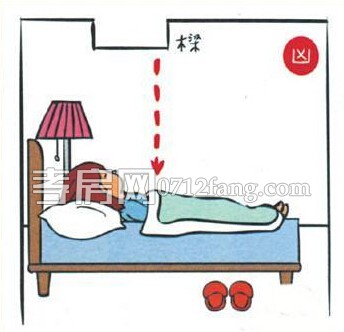 橫梁是建筑物主體結(jié)構(gòu)之一,主要由鋼筋混凝土組成,當(dāng)指南針?lè)旁诹合?,指針立刻?huì)改變方向,這可證實(shí)橫梁會(huì)產(chǎn)生明顯的物理磁感應(yīng)作用。由此可知,睡在橫梁下,人體的微電系統(tǒng)(尤其是大腦、心臟)會(huì)直接受到負(fù)面影響,造成睡眠不足、頭痛等現(xiàn)象。建議在梁下放矮柜,或干脆作整面包梁立頂柜來(lái)避開(kāi)。