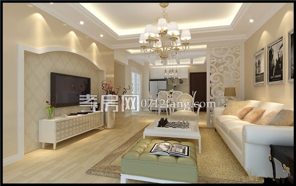 簡約、質樸的設計風格是眾多人群所喜愛的,生活在繁雜多變的世界里已是煩擾不休,而簡單、自然的生活空間卻能讓人身心舒暢,感到寧靜和安逸。在細部處理上,客廳電視背景采用曲線造型。一進家門,便迎來通透的雕花隔斷,視線可以隱隱約約的透過其縫隙,看到客廳的沙發(fā)一面給人以神秘感。歐式的吊頂透露著古典歐式的典雅與豪華,又更適應現(xiàn)代生活的休閑與舒適。
