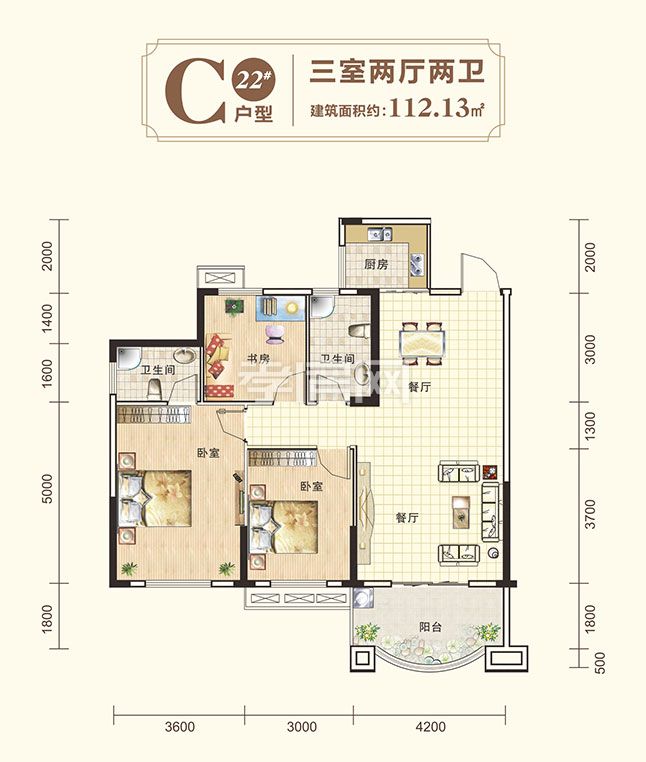 建面約112.13m2三房?jī)尚l(wèi),寬敞主臥,特設(shè)獨(dú)立衛(wèi)生間,體驗(yàn)豪華感覺(jué),獨(dú)立大景觀花園陽(yáng)臺(tái),彰顯寫意人生