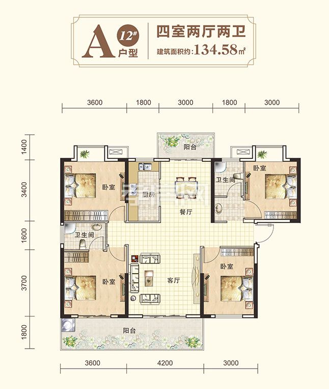 建面約134.58四房?jī)蓮d兩衛(wèi)戶型,闊景四房,南北朝向雙陽(yáng)臺(tái),采光通風(fēng)佳180°景觀陽(yáng)臺(tái),連通主臥、客廳舒適生活