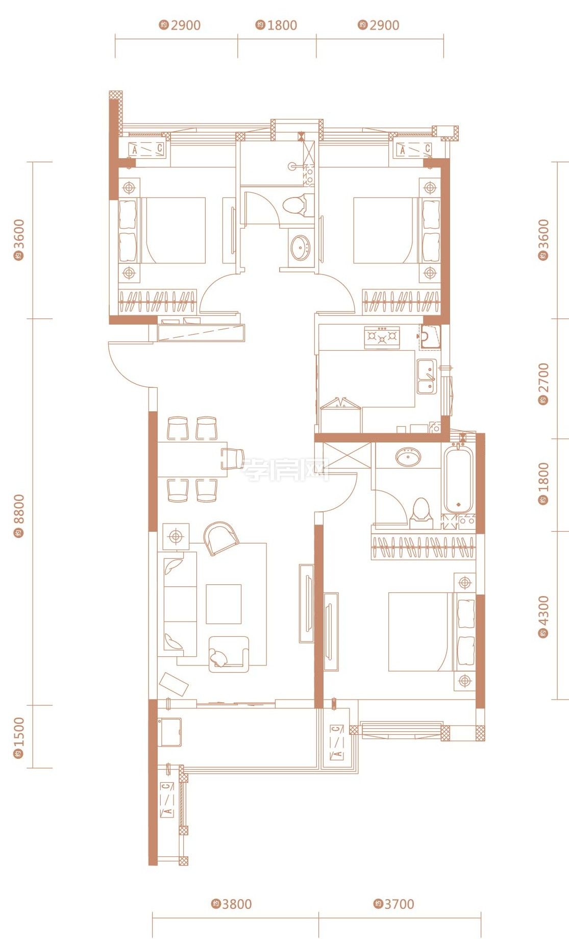 經(jīng)典三房布局,全明通透,空間布置恰到好處