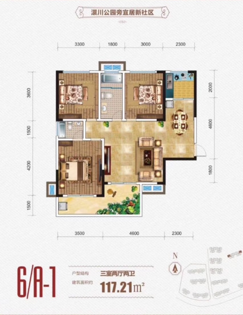 6/A-1:建面約117.21㎡ 三室兩廳兩衛(wèi)戶型