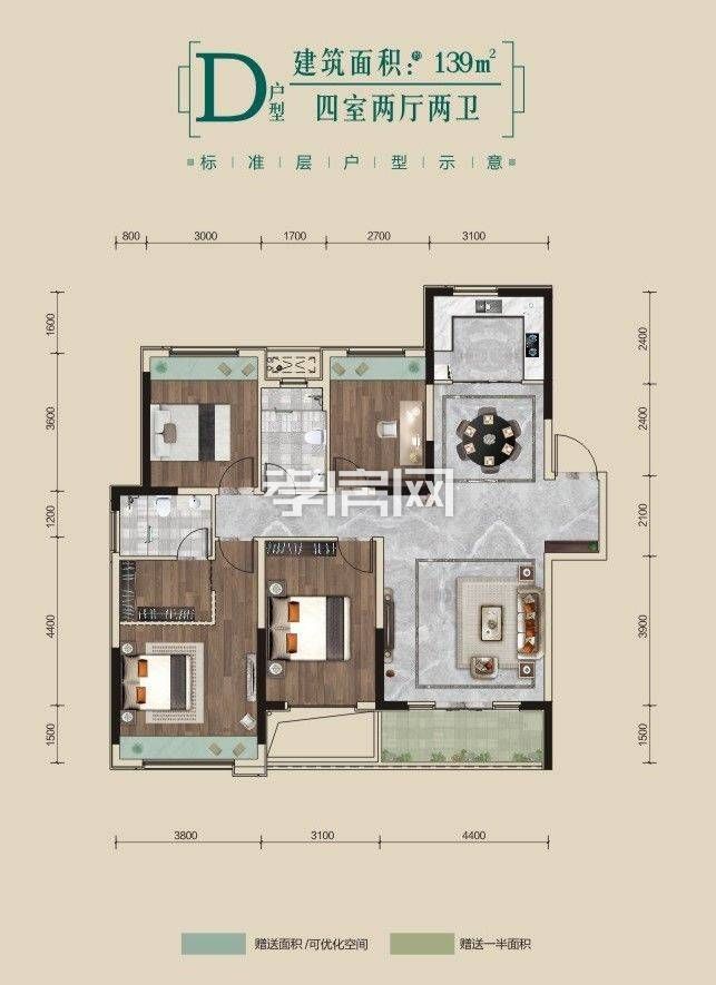 ? ? ? ?4、建面約139㎡四室兩廳兩衛(wèi)