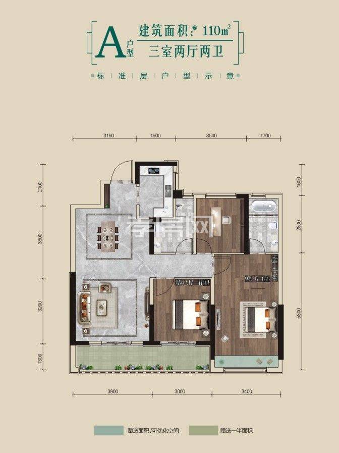 ? ? ? ?1、建面約110㎡三室兩廳兩衛(wèi)