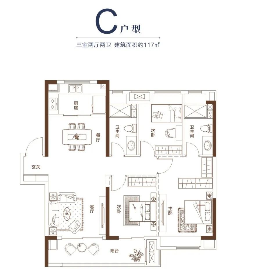 三室兩廳兩衛(wèi)方正格局,南北通透