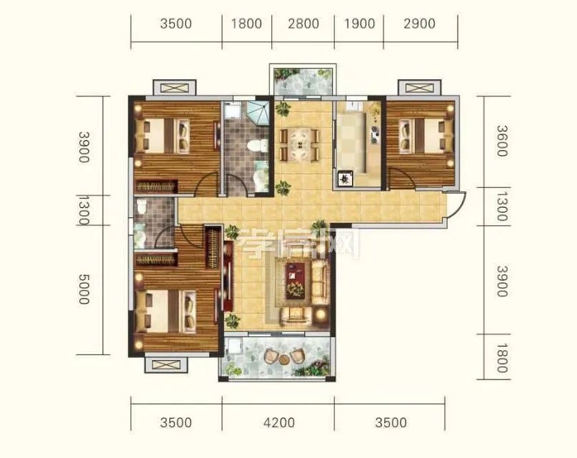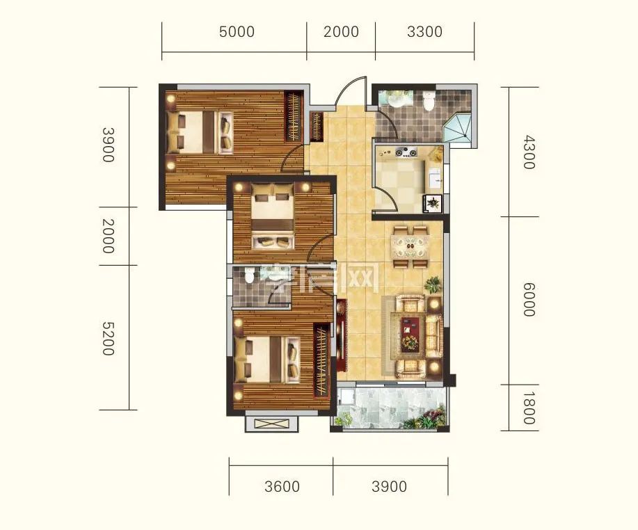 3室兩廳兩衛(wèi)1陽臺