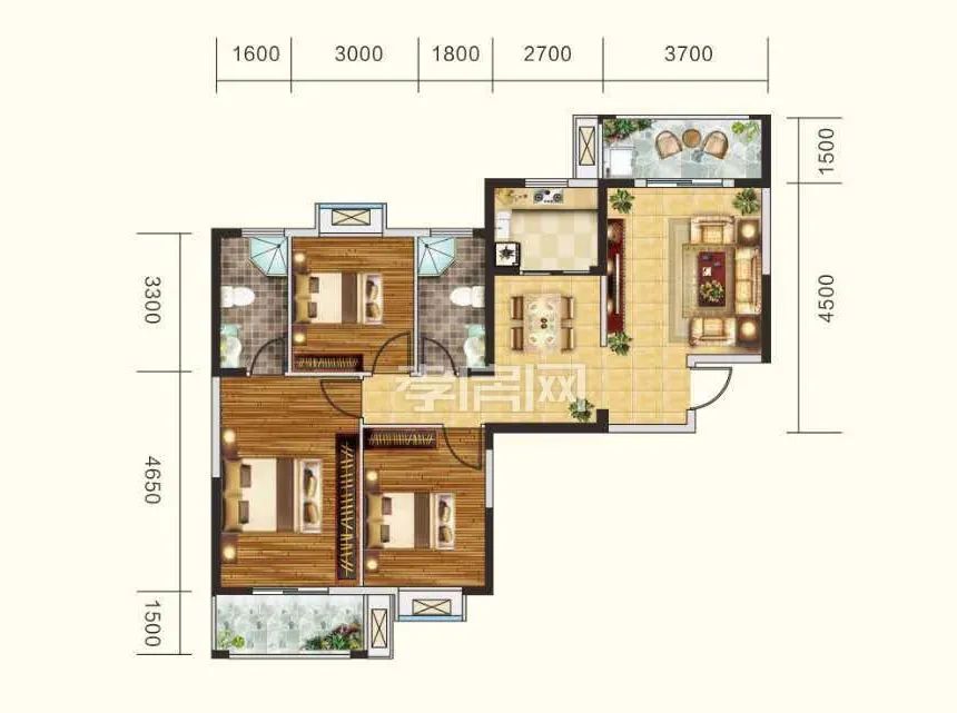 3室2廳2衛(wèi)2陽臺