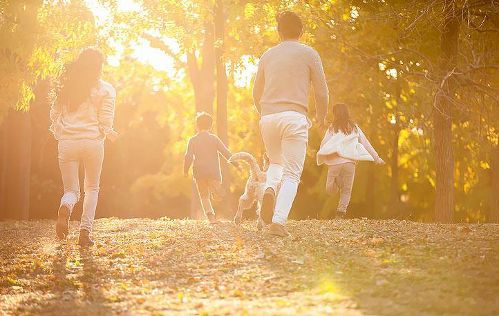 太太牽著孩子,擁伴父母漫步園區(qū)