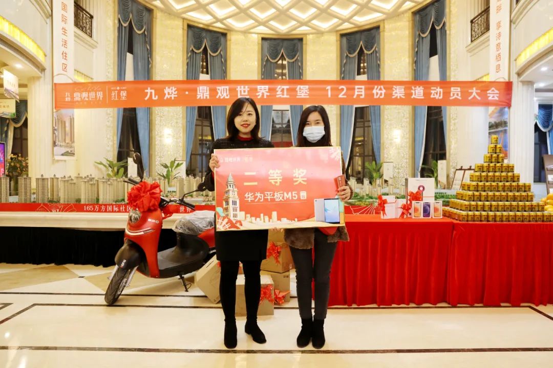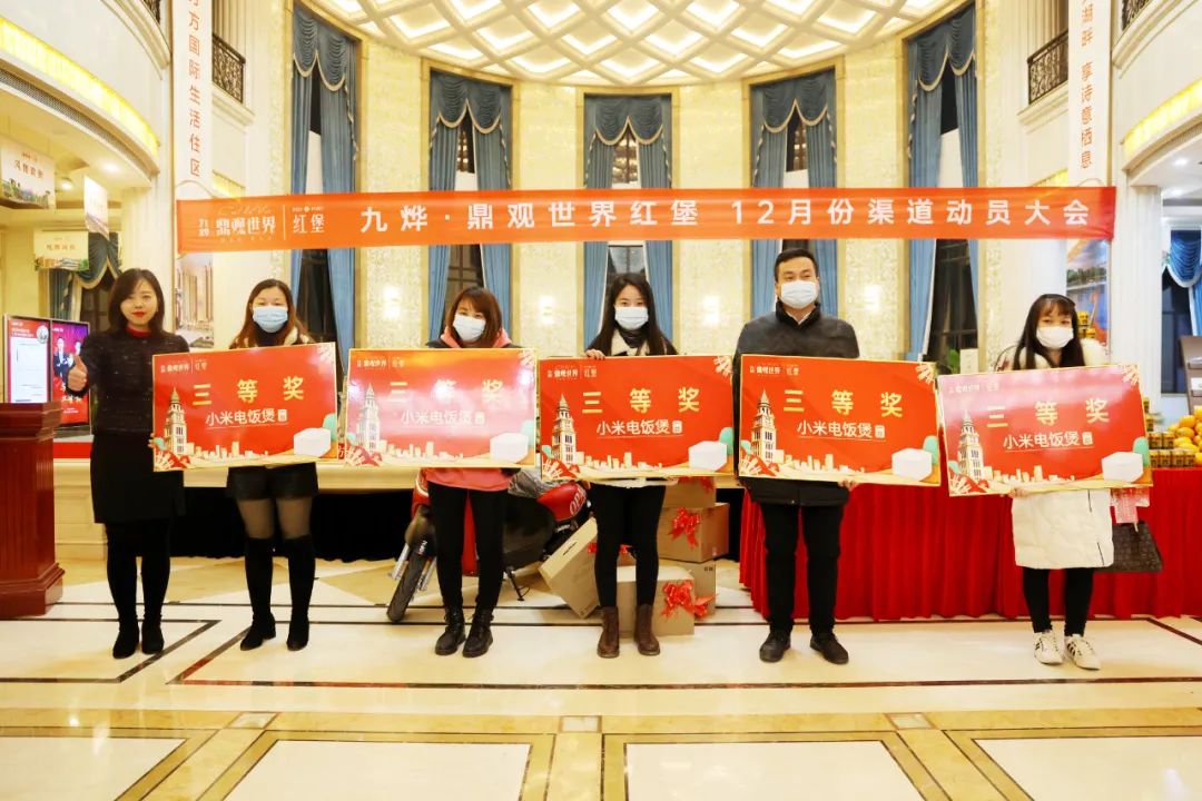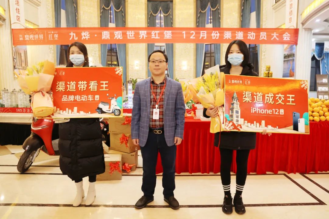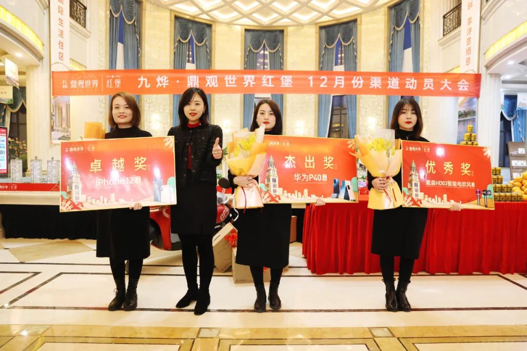 ? ? ? ?大會對他們進(jìn)行了表彰,九燁集團(tuán)楊總、余總為他們頒發(fā)獎品,iPhone12、華為P40、戴森吹風(fēng)機等大獎接連送出,這是一份獎勵,更是一份榮譽。