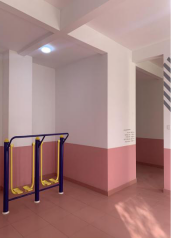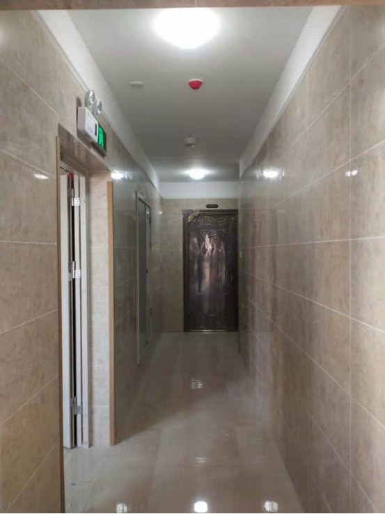 樓棟公區(qū)空間瓷磚上墻,天花板燈控照明又節(jié)能,顯得很暖心。入戶門(mén)和電梯門(mén)的開(kāi)口處相隔距離也很恰當(dāng),不存在打擾的情況。消防樓梯間在電梯廳背后之間,對(duì)消防逃生很有幫助。