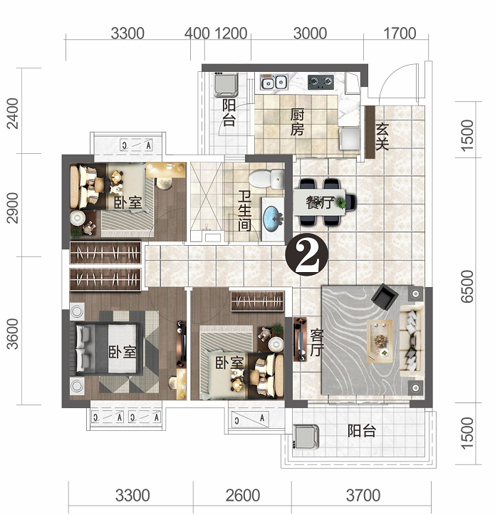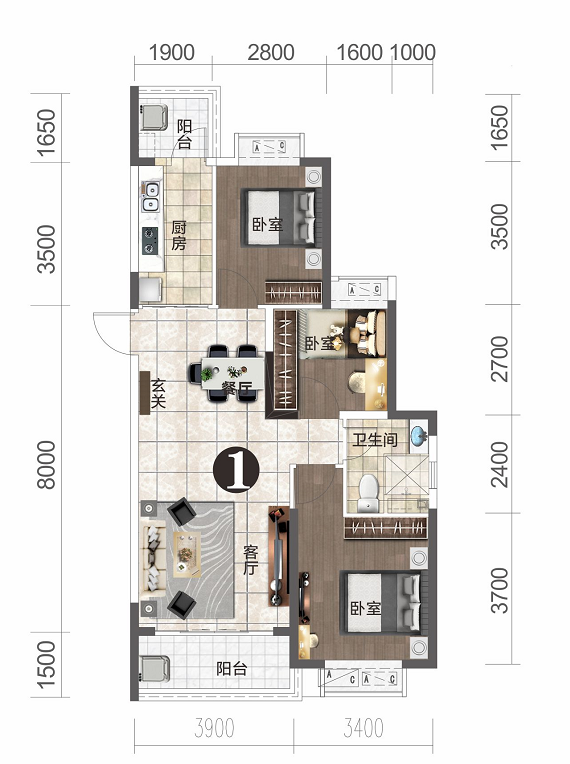 別致雙陽(yáng)臺(tái)設(shè)計(jì),通透三房標(biāo)配