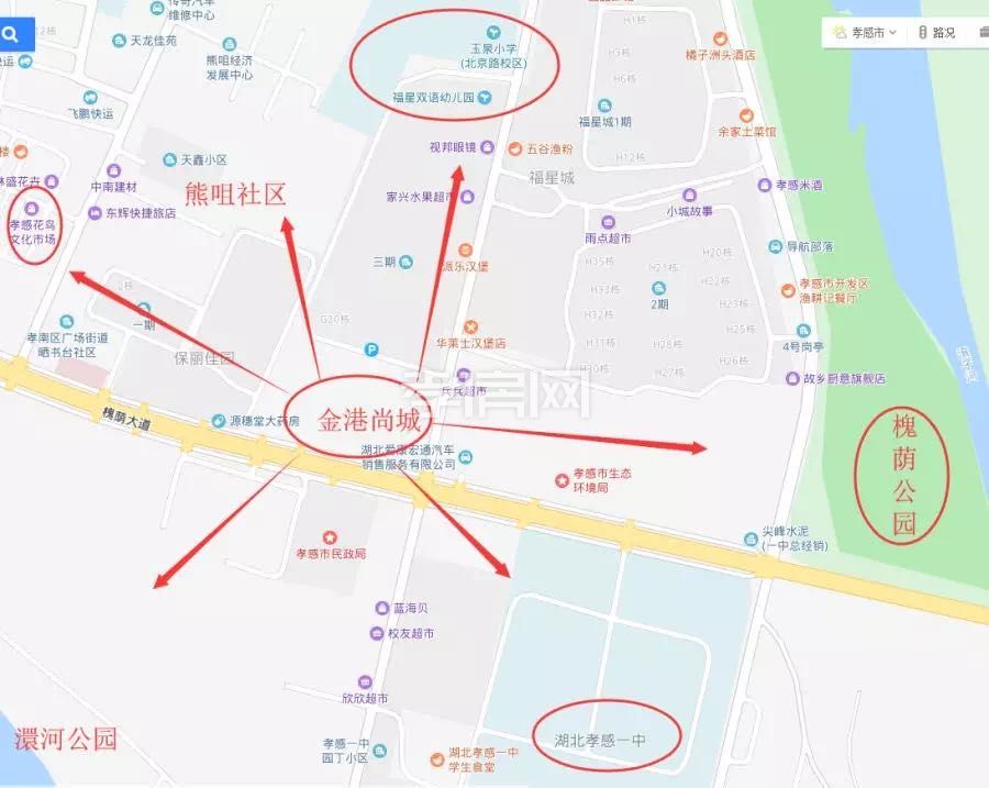 ? ? ? ?公共交通:(3、4、11、21路公交)從項目經(jīng)過,漢孝城鐵孝感東站距離本項目直線距離3公里,駕車5分鐘可達,孝感汽車站距離本項目直線距離1.4公里,步行可達。