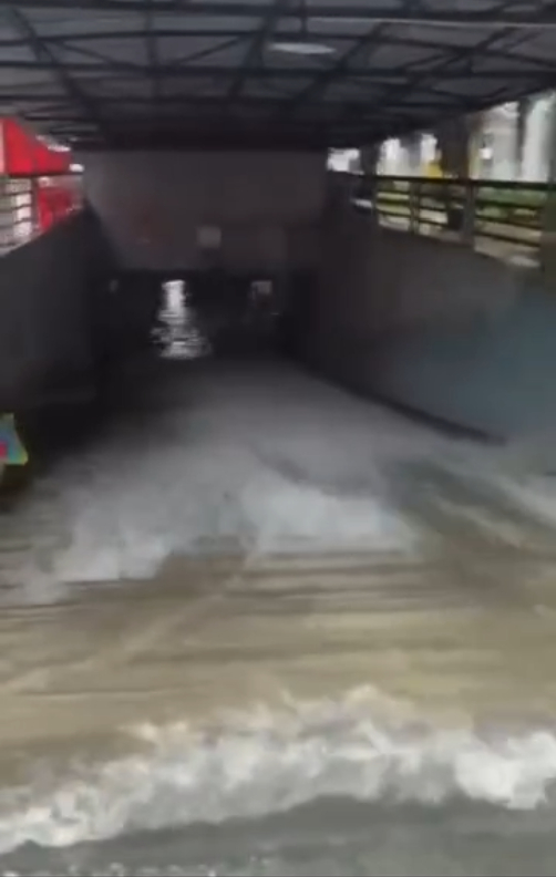 ? ? ? ?有積滿(mǎn)水的地道橋,有泡在水里的小汽車(chē),有淌水的路人,還有正在救援的消防、武警戰(zhàn)士們……