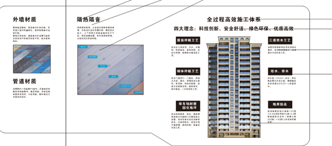 ? ? ? ?在工藝工法上,我們的屋面采用雙層SBS防水卷材,屋面采用絕熱擠塑聚苯乙烯泡沫塑料板(X350型),外墻采用內(nèi)保溫、膨脹?;⒅檩p質(zhì)砂漿等。在排水方面我們都是做的同層排水,有效降低排水噪音、消除漏水隱患、也有利于后期維修維護(hù)。