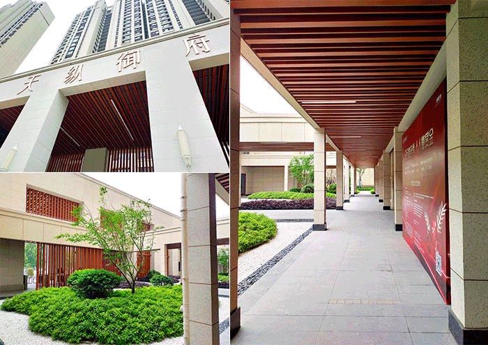 ? ? ? ?剛到小區(qū)門口就看到大大的四個(gè)字“天縱御府”,這里是小區(qū)的大門,項(xiàng)目大門用米白色+紅棕色系,簡約而又不簡單,非常高大上,內(nèi)襯部分用線條鏤空設(shè)計(jì),提高了整體顏值,是一個(gè)很有質(zhì)感的小區(qū)大門。