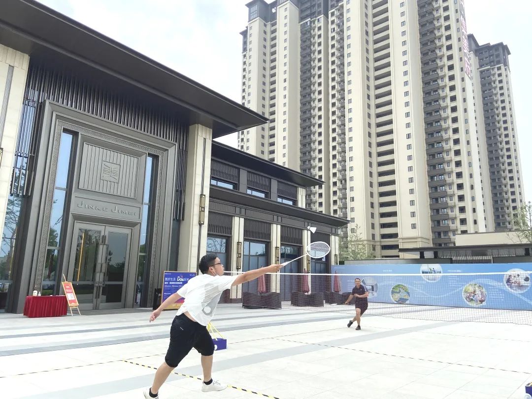 ? ? ? ?羽鄰?fù)?,一拍即合?月18日在金科·集美府營銷中心廣場前,精彩帥氣的揮拍,揮汗如雨后的暢快,奪得勝利后的狂歡,金科·集美府的羽毛球愛好者們來了一場夏日狂歡。揮灑著熱情的汗水,注視著羽毛球飛翔的軌跡,這就是金科·集美府鄰里之間和睦相處的象征!