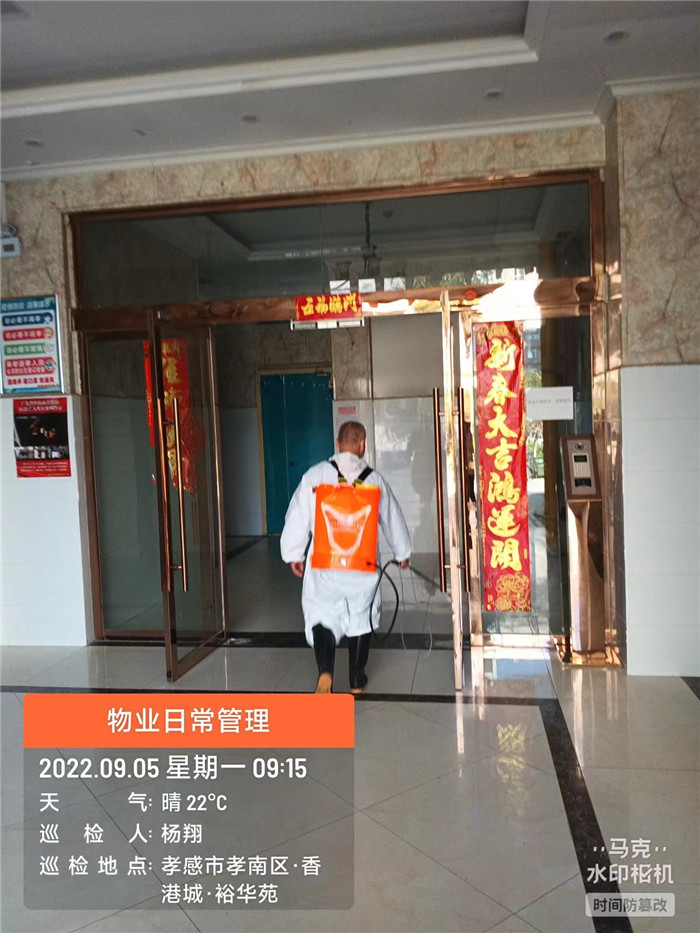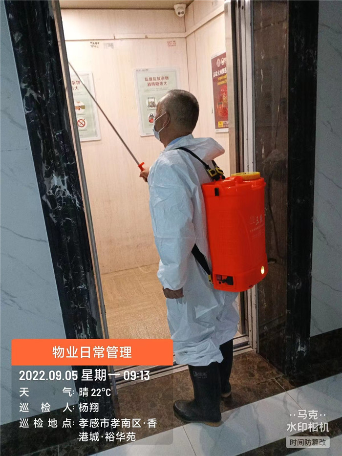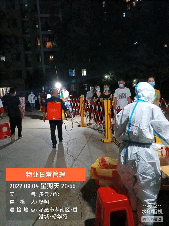 ? ? ? ?除了加強(qiáng)日常巡查工作,物業(yè)人員紛紛成為小區(qū)的志愿者、防控人員,積極配合完成街道社區(qū)的防控要求。在核酸檢測(cè)現(xiàn)場(chǎng),物業(yè)人員會(huì)在開始、途中、結(jié)束后對(duì)現(xiàn)場(chǎng)三次消殺。同時(shí)對(duì)小區(qū)樓道、電梯等各個(gè)角落進(jìn)行消殺工作。