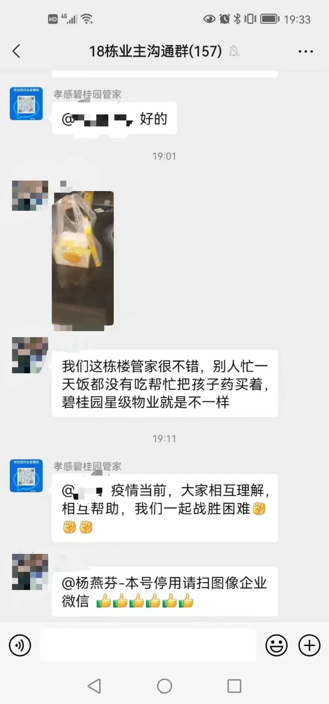 ? ? ? ?“小楊有個(gè)事兒請(qǐng)你幫下忙,我家孩子有點(diǎn)不舒服,麻煩你幫忙買點(diǎn)藥!”9月6日下午3點(diǎn)孝感碧桂園桃源管家楊燕芬正在苑區(qū)協(xié)助社區(qū)組織業(yè)主做核酸,突然接到18棟一業(yè)主的求助電話。