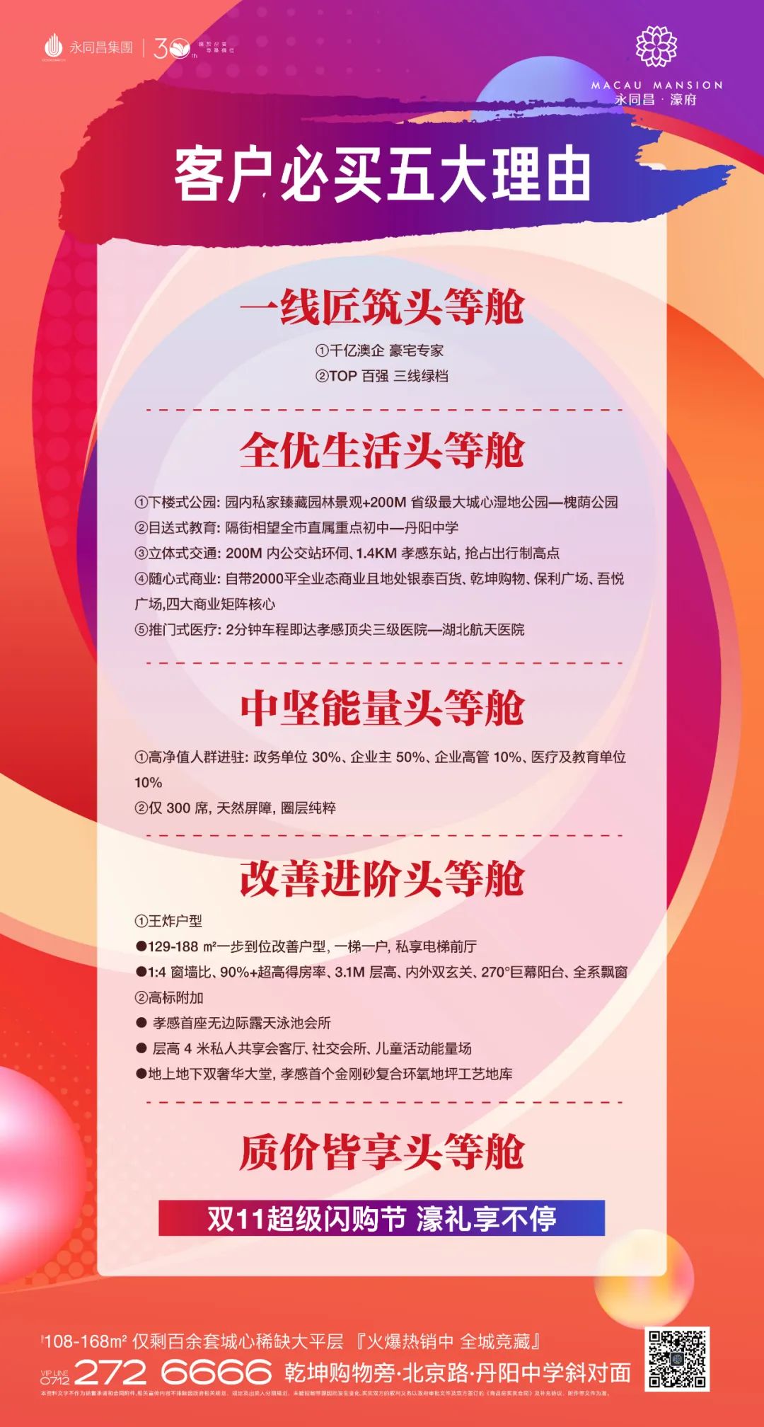 ? ? ? ?世界風(fēng)范,品鑒至臻格調(diào),永同昌集團(tuán)以30周年匠心精神,精心研磨,只為鼎新孝感人居標(biāo)桿生活方式,傾心打造孝感封面人居。永同昌·濠府雙11掀起孝感購(gòu)房熱,城芯稀缺大平層巔峰讓利,引發(fā)孝感全城矚目。