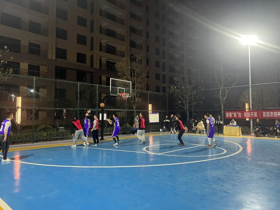 ? ? ? ?新春“兔”擊,幸福開賽,讓溫馨和諧的生活場(chǎng)景成為鄰里的日常,首屆幸福杯地產(chǎn)籃球友誼賽,在居和·幸福里小區(qū)燈光籃球場(chǎng)上演。
