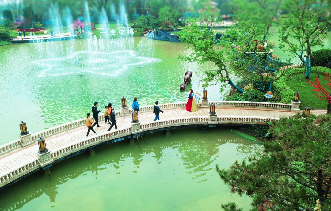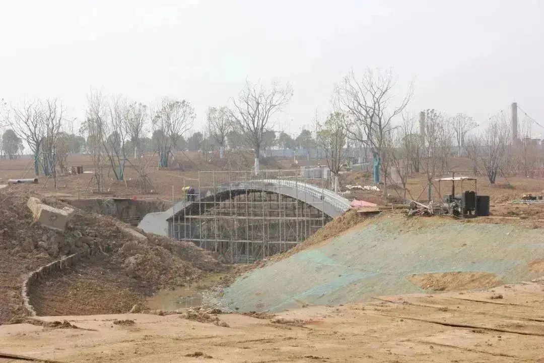 圓形拱橋、彎道棧橋等橋梁正在建設(shè)中,
