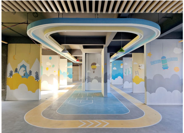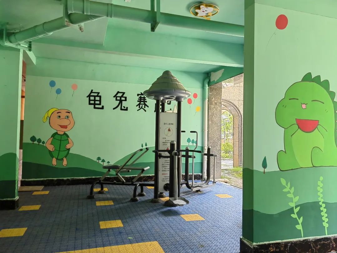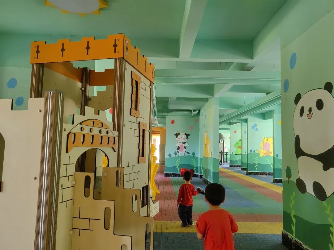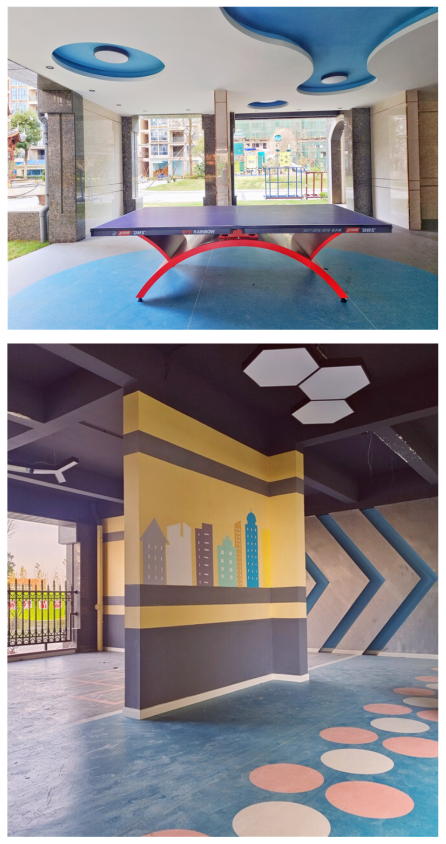 ? ? ? ?再走幾步,來(lái)到樓棟下面的架空層,這里是孩子們的樂(lè)園,各種高顏值、可玩性高的游樂(lè)設(shè)施,滿足不同年齡段兒童需求,完全不用擔(dān)心淋雨!