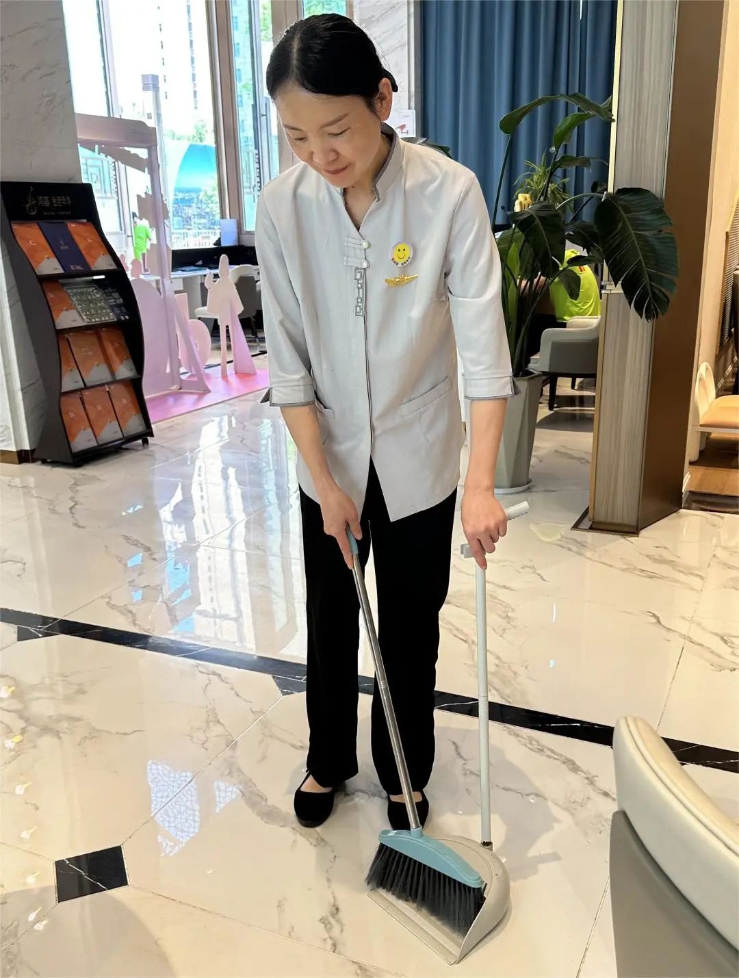 ? ? ? ?她是美的代表,自入職以來吃苦耐勞,哪里需要她,哪里就會出現(xiàn)她的身影,她工作兢兢業(yè)業(yè),細心細致,細心尋找每一處雜物,事無巨細地擦拭清洗,把案場收拾的干凈整潔,讓一切保持最美最凈的姿態(tài)。她說:“干一行,愛一行?。保持樂觀的心態(tài)很重要”。
