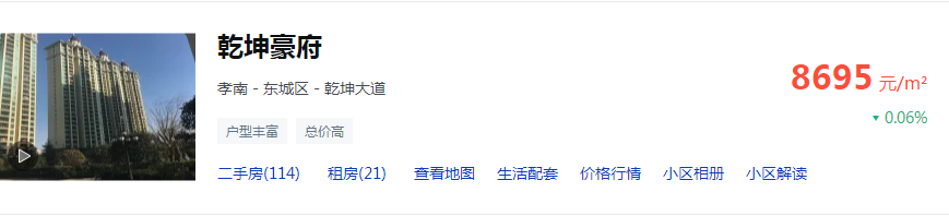 ? ? ? ?附近入住率較高一些的二手房小區(qū),房源掛出來的價格也是同區(qū)域內的頭部。比如乾坤豪府、民邦槐蔭東岸、中都巴黎城掛出來的價格在7K/8K多。