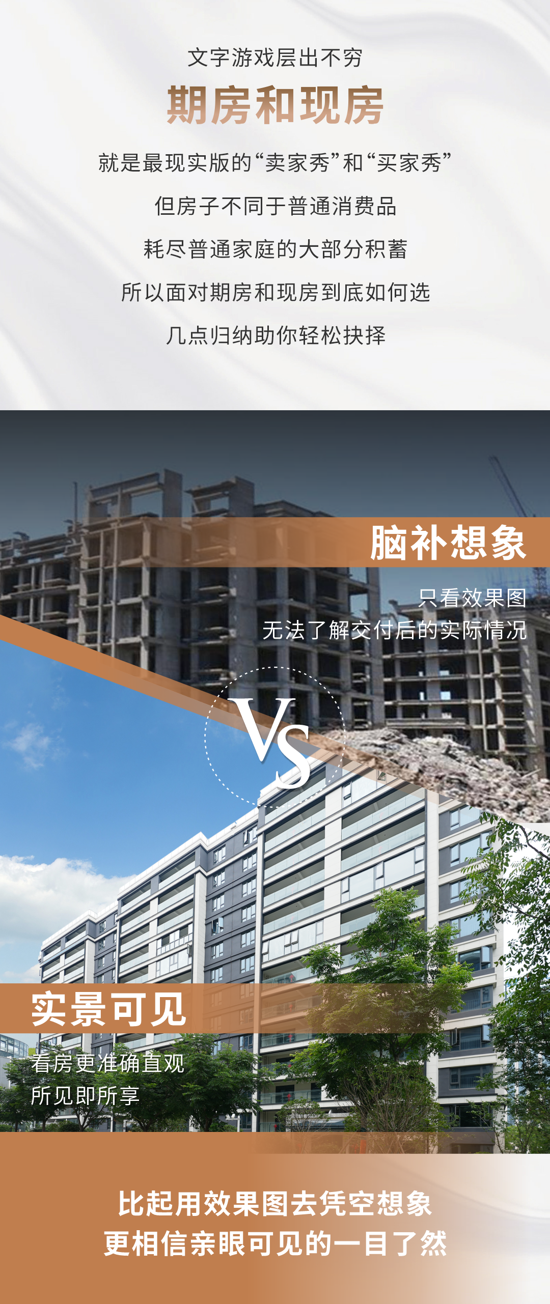 ? ? ? ? "有人將購買期房比喻為“押寶”,確實,期房有著很大的不確定性,對買房人來說風(fēng)險很大。對比之下,現(xiàn)房的優(yōu)勢就很明顯。沒有虛假信息,買的放心,不用等兩三年,節(jié)省成本更快入住。"