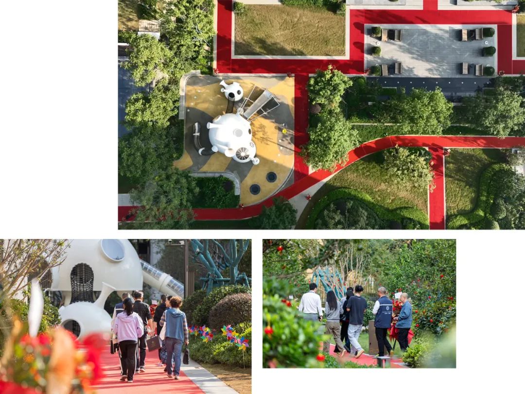 ? ? ? ?進(jìn)入小區(qū),“五區(qū)、兩軸、一環(huán)”的景觀布局,將鋼筋混凝土的冰冷和堅(jiān)硬,消解在一片蔥蘢蒼翠間。漫步其中,喬木高低錯落、綠植疏密有致,大自然的生機(jī)和繁盛撲面而來,步移景異的視覺spa使人神清氣爽。兒童互動區(qū)、游樂區(qū)、景觀會客廳等功能區(qū)分布在花草樹木的合圍中,成為孩子們的歡樂源泉和大人們的社交主場。