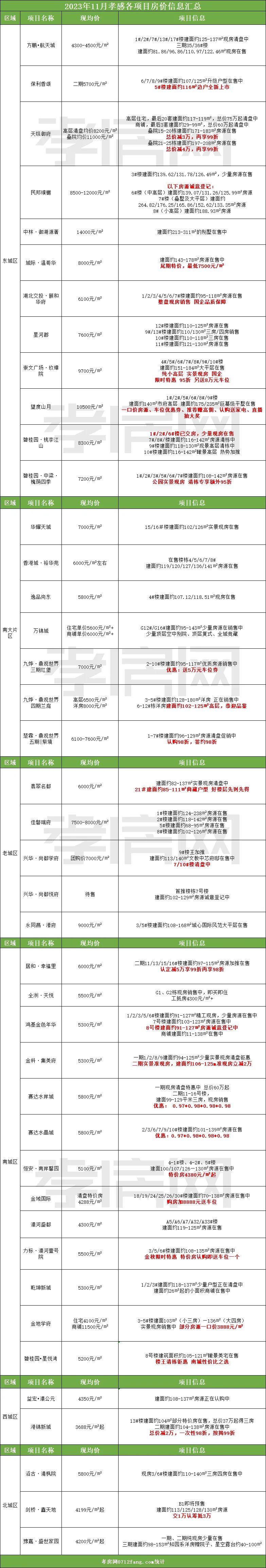 孝感42個(gè)樓盤房價(jià)匯總