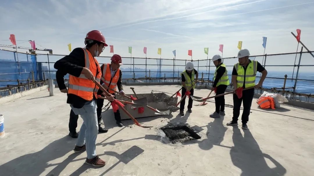 ? ? ? ?伴隨著現(xiàn)場(chǎng)倒計(jì)時(shí),嘉賓領(lǐng)導(dǎo)共執(zhí)金鍬,共同為鴻基·金色年華8#樓澆筑最后一塊混凝土。工地現(xiàn)場(chǎng)隨著禮炮齊鳴,鴻基·金色年華8#樓,迎來(lái)了封頂大吉的喜慶時(shí)刻,順利封頂也昭示著項(xiàng)目取得了階段性勝利,也將是項(xiàng)目的一個(gè)新里程碑。