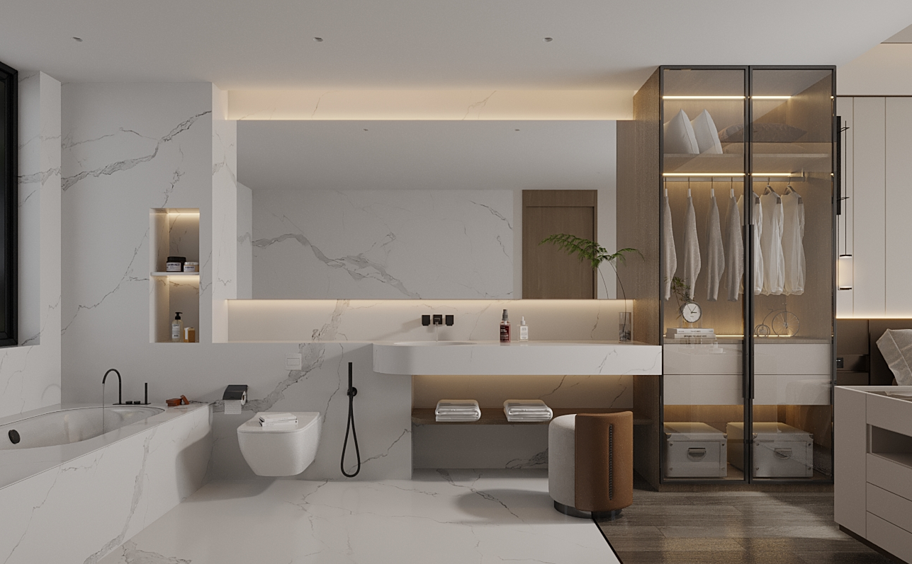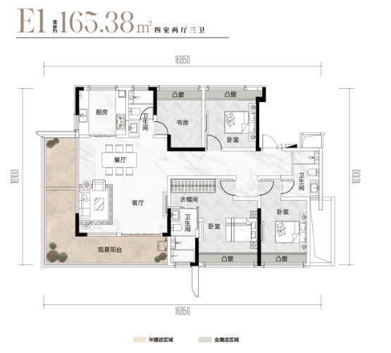 ? ? ? ?此次精奢樣板間開放展示的戶型為143.04㎡三室兩廳兩衛(wèi)、142.41㎡三室兩廳兩衛(wèi)、165.38㎡四室兩廳三衛(wèi)和191.44㎡四室兩廳三衛(wèi),這四個戶型采用現(xiàn)代輕奢風格,空間通透大氣,呈現(xiàn)“屋超所值”的生活體驗。入戶玄關(guān),輕松安置鑰匙、包包等物件;餐客廚一體化設(shè)計,讓家庭休閑、宴會社交、親子游樂等多重需求聚焦于一起,情感加速升溫;豪華主臥套房設(shè)計,給予男主女人尊崇禮遇,匹配衣帽間,寬敞衛(wèi)浴,瞰景飄窗,呵護精致優(yōu)雅生活。