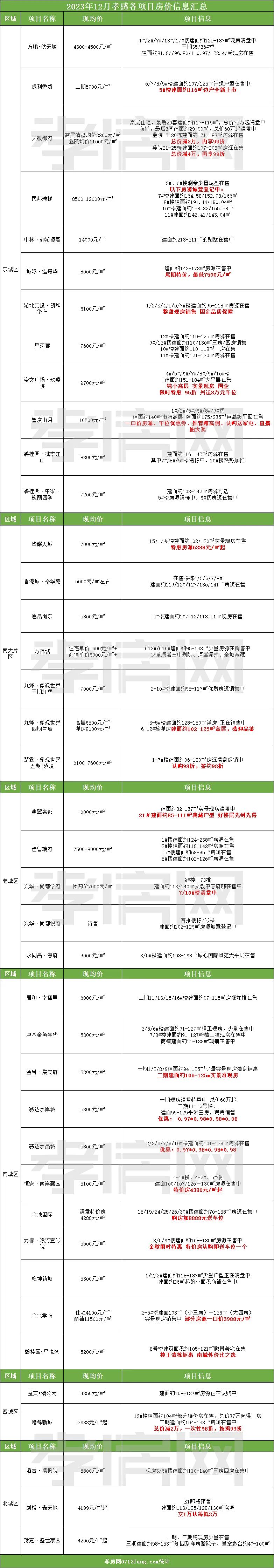 ? ? ? ?1、本篇數(shù)據(jù)為不完全統(tǒng)計(jì),新盤數(shù)據(jù)僅包含孝感主城區(qū)在售樓盤;