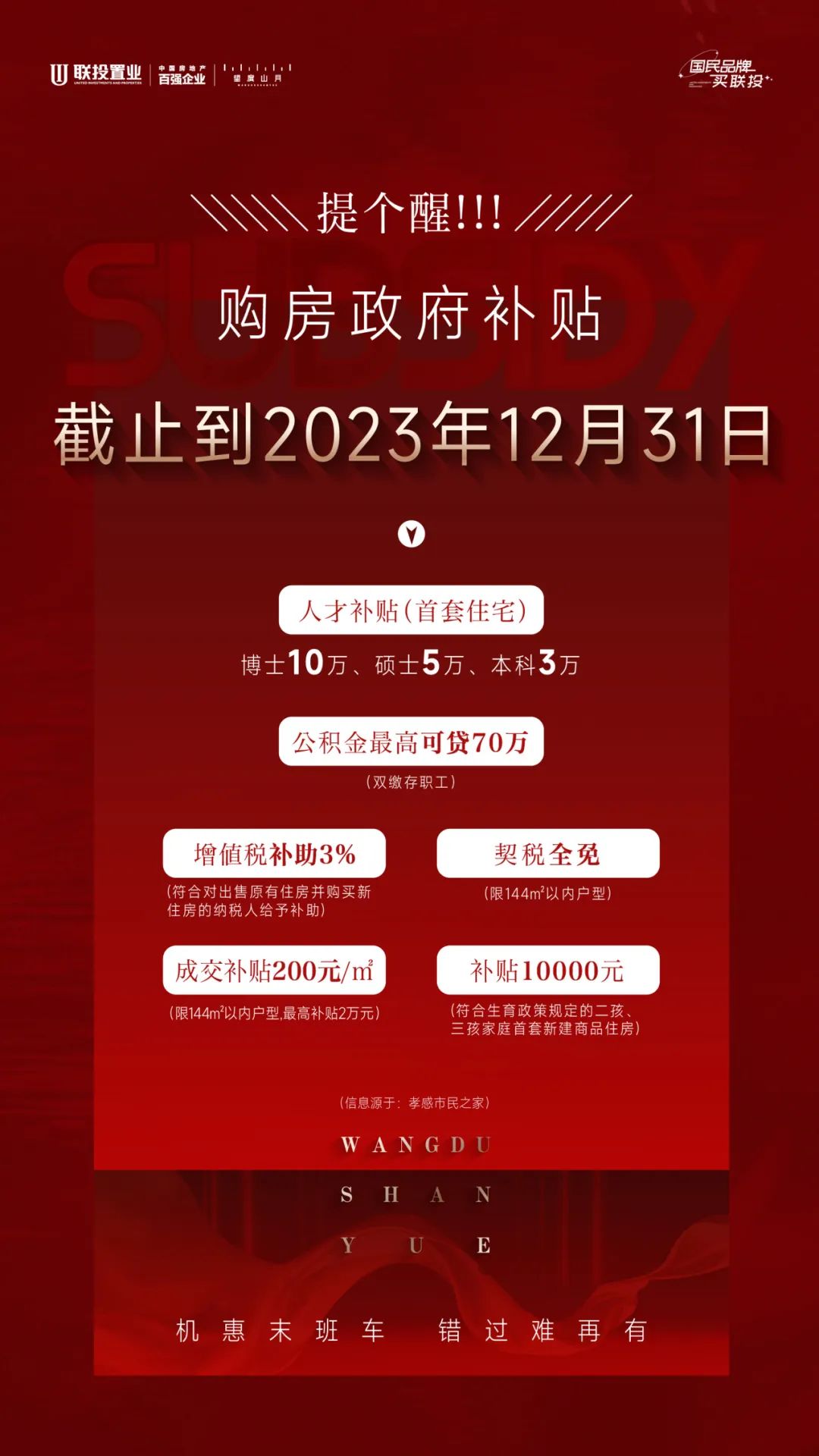 ? ? ? ?年終到來(lái)之際,望度山月傾情回饋,置業(yè)即享豪宅清棟特惠超值機(jī)遇,此外,孝感市政府購(gòu)房補(bǔ)貼回收倒計(jì)時(shí),好房要趁早,這波特惠就要分秒必爭(zhēng)!