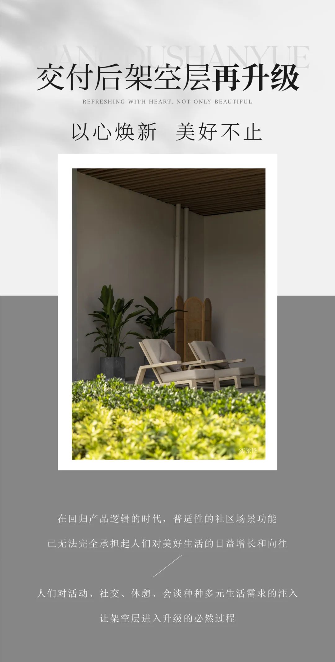 ? ? ? ?聯(lián)投望度山月2#、3#樓全新架空層,即將與家人們親切相逢,敬請(qǐng)期待!