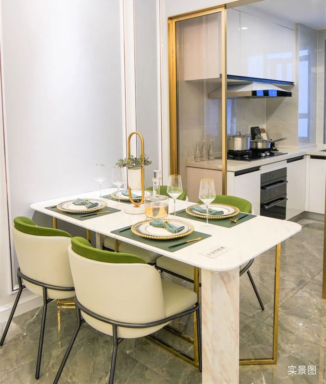 ? ? ? ?餐廳廚房兩個空間,既相互連接又有區(qū)隔區(qū)分,烹飪操作與享受美食相依相連,動線合理,悅享盛宴,盡嘗愛的味道。