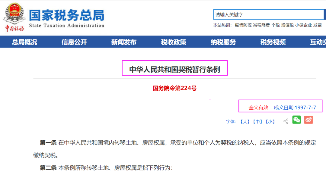 第十六條 本法自2021年9月1日起施行。1997年7月7日國(guó)務(wù)院發(fā)布的《中華人民共和國(guó)契稅暫行條例》同時(shí)廢止。