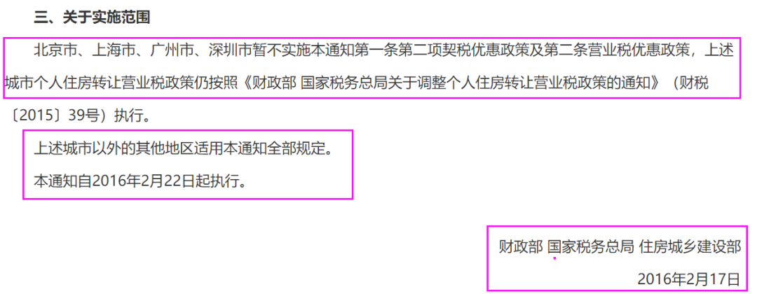 契稅優(yōu)惠政策實(shí)施范圍和時(shí)間:除“北上廣深”外的其他地區(qū)全部適用,自2016年2月22日起執(zhí)行。