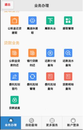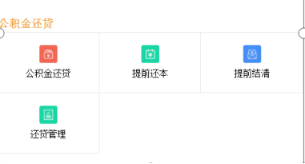2、點(diǎn)擊“貸款業(yè)務(wù)”中的“公積金還貸”,頁面顯示3個(gè)子菜單,包括公積金還貸、提前還本、提前結(jié)清、還貸管理。