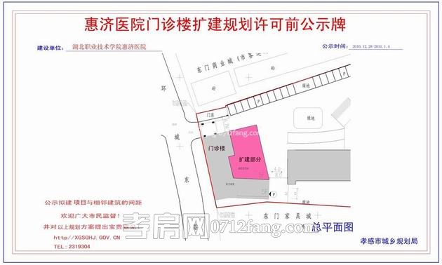 孝感惠濟醫(yī)院門診樓擴建規(guī)劃許可前公示牌