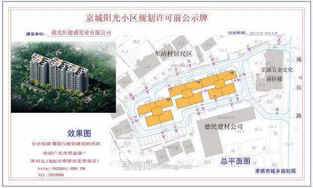 京城陽光小區(qū)規(guī)劃許可前公示牌