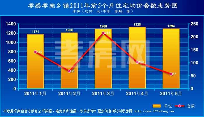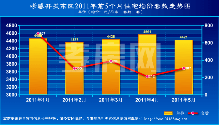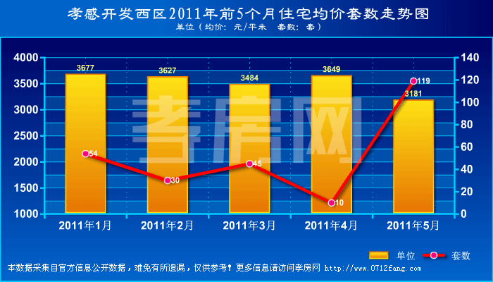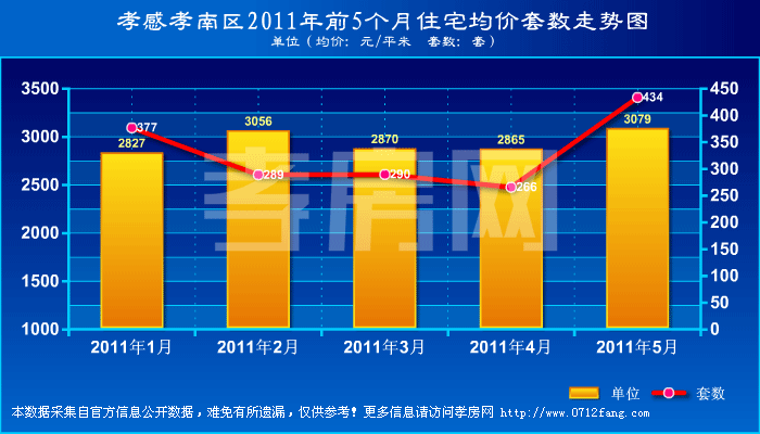 孝感城區(qū)2011年1~5月房產(chǎn)數(shù)據(jù)示例圖
