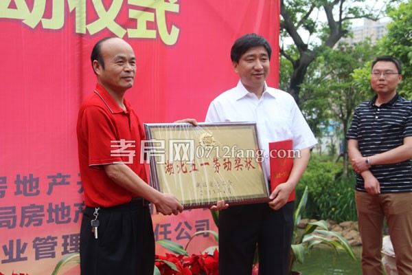 中建·國際花園項目上,中建三局房地產(chǎn)開發(fā)有限公司“先創(chuàng)優(yōu)”勞動競賽啟動。孝感市總工會黨組書記、常務(wù)副主席蔡勝、孝感市總工會副主席汪斌,中建三局黨委副書記、工會主席胡金國等一起為項目頒發(fā)湖北五一勞動獎狀、榮譽(yù)證書并為勞動競賽參賽隊授發(fā)錦旗。
