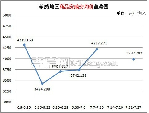 從7月21日到7月27日,孝感區(qū)域商品房成交均價為3987.783元/平方米。這一周孝感地區(qū)成交均價仍然是在3000-4500元/平方米的范圍內(nèi)波動,并沒有別突出的起伏。另外,穩(wěn)定的均價也意味著商品房市場交易的平穩(wěn)進行。