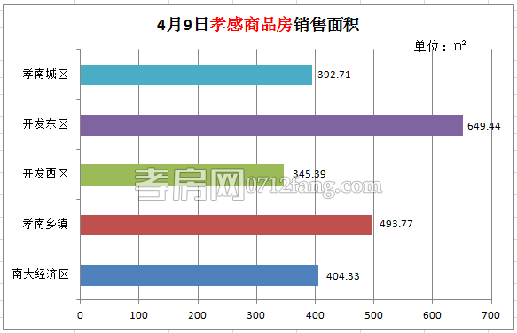 4月9日,全市的銷售面積2285.64㎡。其中孝南城區(qū)為392.71㎡,開發(fā)東區(qū)為649.44㎡,南大經(jīng)濟(jì)區(qū)為404.33㎡, 開發(fā)西區(qū)為345.39㎡,孝南鄉(xiāng)鎮(zhèn)為493.77㎡。