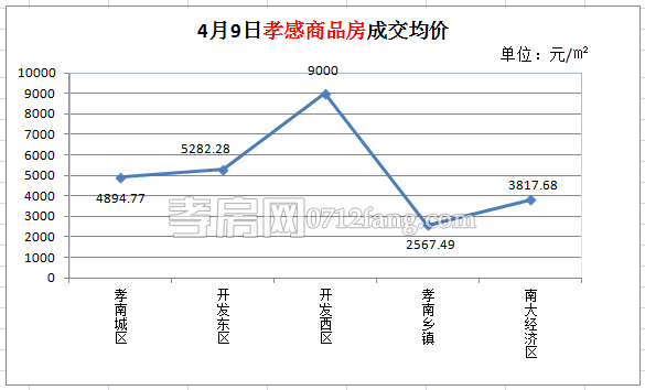 4月9日,全市的成交均價為4931.93元/㎡。其中開孝南城區(qū)為4894.77元/㎡,開發(fā)東區(qū)為5282.28元/㎡,開發(fā)西區(qū)為9000.00元/㎡,孝南鄉(xiāng)鎮(zhèn)2567.49元/㎡,南大經(jīng)濟(jì)區(qū)為3817.68元/㎡。