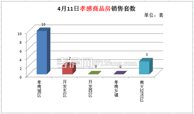 4月11日,全市的銷售套數(shù)為15套。其中孝南城區(qū)為10套,開發(fā)東區(qū)為2套,南大經(jīng)濟區(qū)為3套。