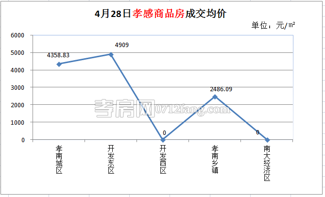 4月28日,全市的成交均價為4492.00元/㎡。其中開孝南城區(qū)為4358.83元/㎡,開發(fā)東區(qū)為4909.00元/㎡,孝南鄉(xiāng)鎮(zhèn)為2486.09元/㎡。